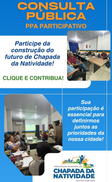 A Prefeitura Municipal convida toda população a participar da Consulta Pública Online para elaboração do Plano Plurianual (PPA) 2026-2029.